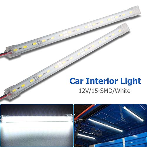 HugeAuto - Striscia luminosa per interni auto, 12 V, 5 W, 15 LED, luce bianca, per auto, furgoni, barche, camper, cucina, bagno, 2 pezzi