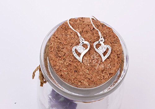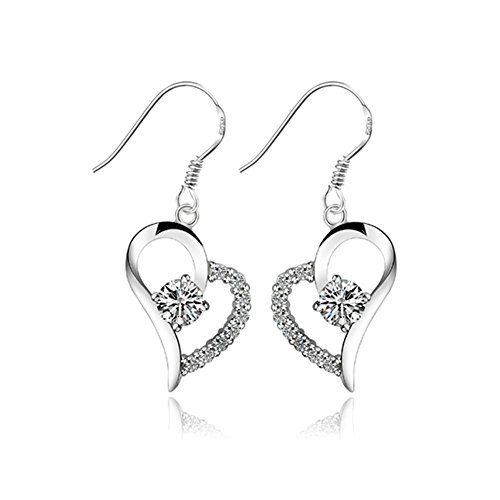 HugeStore - Orecchini a cerchio in argento Sterling 925 con strass a forma di cuore, colore: Bianco