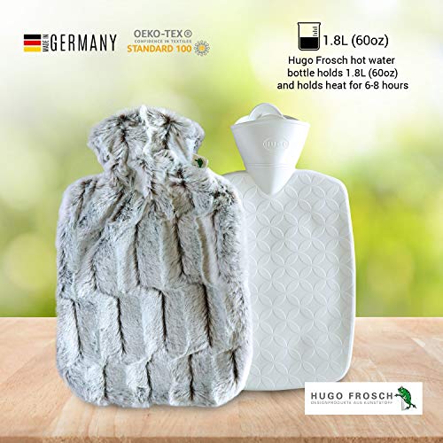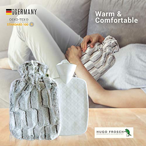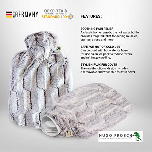 Hugo Frosch Classico in Finta Pelliccia Copertura e Fodera Borsa dell' Acqua Calda, Unisex, Classic Faux Fur Cover And Lining, Brown/Silver, Taglia Unica