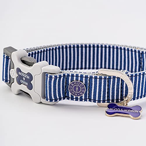 HUGO & HUDSON Collare per Cani in Nylon con Fibbia in di Sicurezza a sgancio rapido, Collare per Animali Imbottito Morbido - Navy a Righe - M