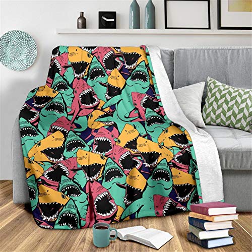 HUGS IDEA Pop Art Design Shark Sherpa Fleece Throw Blanket, Fiercely Shark Ocean Animal Soft Warm Cozy Fuzzy Plush Blanket Super Soft Warm Plush Plush Blanket Fuzzy - L