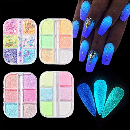 Hugyue Polvere per Unghie, Set in Polvere 6 Colori Polvere luminescente Pigmento Nail Art Luminoso Bagliore nel Colore Scuro Polvere Decorazione per Unghie Fai da Te