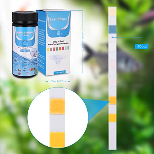 Huiguli 150 PCS Strisce Test Acquario, 7 in 1 Test Kit per Acquario, Kit di Test Acquario per PH, Durezza, Nitrato, Cloro Libero, Nitrito, Radice di Carbonato, Azoto Ammoniacale, Accessori Acquario