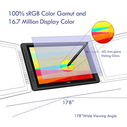 Huion Kamvas pro 22 Tavoletta Grafica con Schermo con Gamma Colori 100% sRGB, 20 Tasti di Stampa Personalizzati e 2 Touch Bar, Monitor per Disegni Grafici con Funzione di Inclinazione, 266 PPS