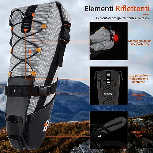 HUISENY Borsa da Sella 10L TPU Borsa da Sella per Bicicletta 100% Impermeabile Borse da Bikepacking con Riflettente per Mountain Road Bike