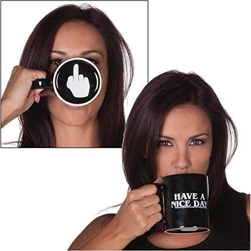 HUISHENG Have A Nice Day Tazza, Coffee Mug, Middle Finger Tazza divertente per succo di latte Caffè o tè Tazza di ceramica nera, regalo per uomini o donne, regalo per uomini ragazzo