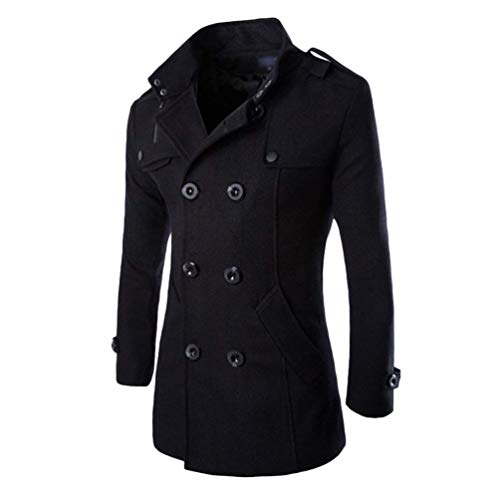Huixin Giacche Invernali da Uomo Maniche Slim di Ragazzo Elegante Lunghe Cappotto Lana Trench Cappotto Doppio Petto Parka Trench Coat Ntel da Uomo (Color: Schwarz, Size: M)