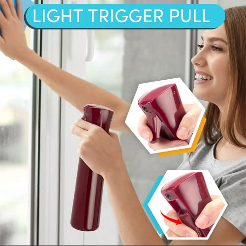 Spruzzo continuo a nebbia fine: l'abete rosso lo definisce il "miglior flacone spray continuo" disponibile. Dopo il secondo grilletto, otterrai uno spruzzo continuo di nebbia fine della durata di 1-2 secondi senza dover premere il grilletto. Anche quando capovolto, otterrai spray uniformi e completi in ogni singola trazione. Con un diametro dell'ugello spray di 0,22 mm, la nebbia è così fine che anche se la perdi e la prendi sui mobili, si asciugherà quasi istantaneamente.