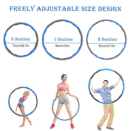 Hula Hoop Fitness Professionale, Hula Hoop per Fitness per Adulti con Design a 8 Sezioni Staccabile e Regolabile, Hula Hoop Dimagrante con Corda per Saltare, Adatto ai Adulti e Bambini (Blu)