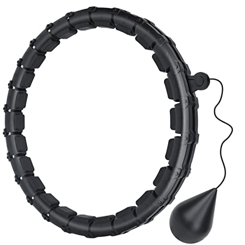 Hula Hoop ponderato, Smart Hula Ring Hoops per esercizi per adulti, 24 cerchi fitness staccabili con palla da ginnastica a 360 gradi, massaggio per perdita di peso, nero