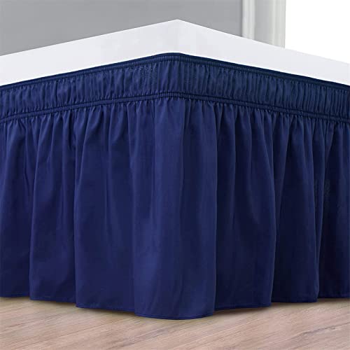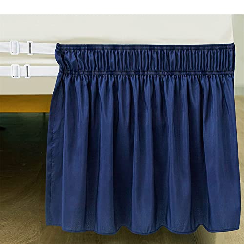 HULG Gonna da Letto Elasticizzata Avvolgente Matrimoniale/Singolo/Piazza E Mezzo Tinta Unita Gonna Letto con Volant Gonna da Letto Facile da Installare da 38/45 Cm (Blue,(150x200)+38cm)