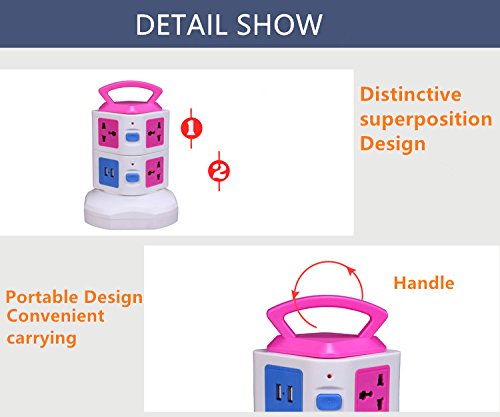 HULKER Persa Multipla Verticale Smart,6 Prese + 4 Porte USB Presa Multipla Protezione da Sovraccarico, Prolunga Presa Elettrica Universale, Telaio Da Alzare, Manico (P6-BiancoGrigio)