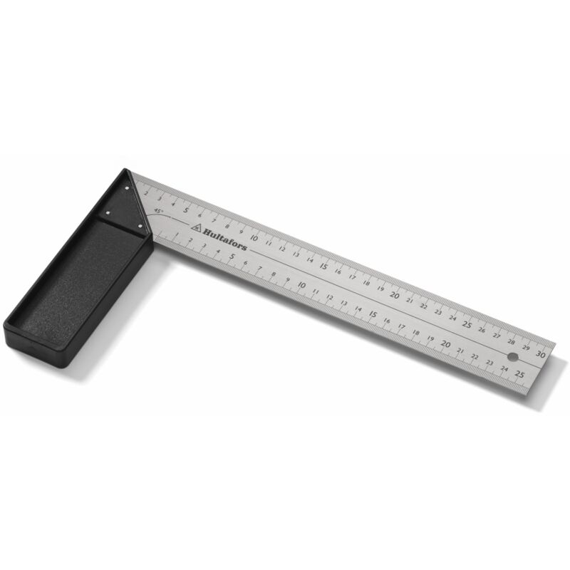 Squadra con base in plastica ABS rinforzata con fibra di vetro e scale in millimetri sui bordi superiore e inferiore della lama. Lama in acciaio inox da 1,0x45 mm. Base in plastica ABS rinforzata con fibra di vetro, superficie di lavoro con larghezza di 18 mm. Scale incise a fondo ed estremamente resistenti all'usura.