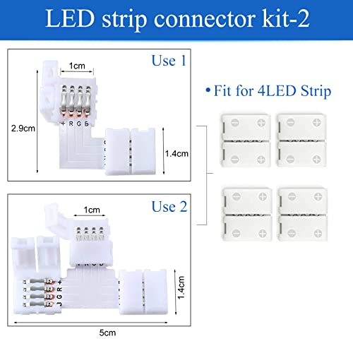 3PCS 2Port LED Strip Extension Cable,9PCS 4pin Plug-Plug Connector,4PCS LED Connector con clip di fissaggio, per striscia LED accessori fai da te