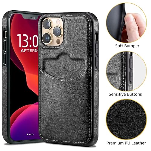 Hulveze Custodia per iPhone 14 Pro Max in Pelle PU con Porta Carte, Custodia a Portafoglio Sottile in Pelle di Lusso Retrò con Slot per Carte Antigraffio Antiurto Cover per iPhone 14 Pro Max(Nero)