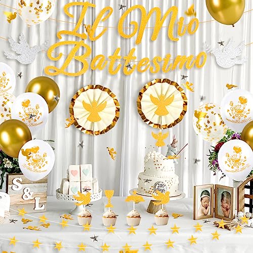 Humairc Addobbi per Battesimo Oro 25pz Prima Comunione Decorazioni Il Mio Battesimo Striscione Battesimo Palloncini Topper Torta Battesimo Coriandoli, per Comunione Battesimo per Ragazzo Ragazza