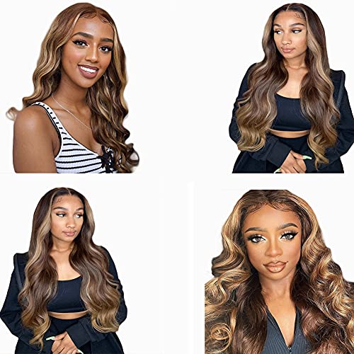 Human Hair Wig Ombre Parrucche Capelli Umani Blond 4/27 Wig Brazilian Body Wave 13x4x1 T Part Transparent Lace Front Wigs Pre Plucked Middle Part For Black Women 130% Density 28 Inch