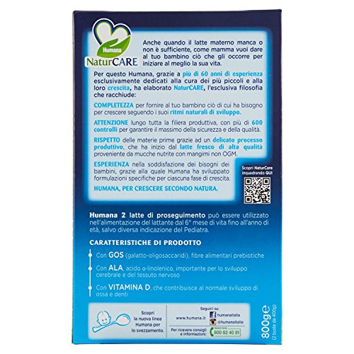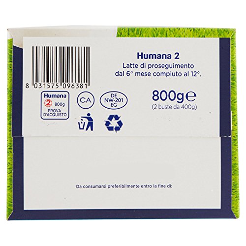 Humana 2 Latte di Proseguimento Indicato dai 6 Mesi, con Prebiotici, Gos, in Polvere - 800 g