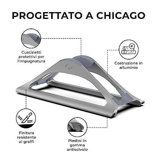 DESIGN IN ATTESA DI BREVETTO: Il design elegante e minimalista (diversi brevetti statunitensi e internazionali in attesa) è funzionale e salvaspazio, aggiungendo allo stesso tempo un aspetto unico alla configurazione della tua scrivania: supporto verticale per laptop realizzato in lega di alluminio anodizzato con finitura grigio siderale da colorare abbinalo al MacBook grigio siderale