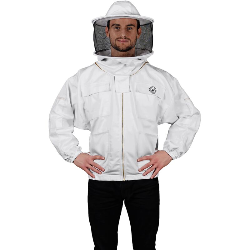 Giacca protettiva uso professionale per Apicoltura. Progettata per il comfort, realizzata per durare nel tempo.Le giacche per apicoltura in polycotone di Humble Bee sono realizzate con una pregiata composizione di 50% cotone e 50% fibra sintetica. Abbiamo ulteriormente migliorato l'alta qualità del prodotto con robuste cerniere in ottone, tasche rinforzate a doppia cucitura e una elegante custodia in tela per il trasporto. Abbiamo aggiunto inoltre un comodo elastico in vita, polsini elastici per proteggere le braccia e asole fermapollici per tenere la giacca sempre a posto.Grande resistenza e massima protezione: in tutta sicurezza contro le punture di ape.Le giacche per apicoltura in polycotone di Humble Bee sono realizzate in un tessuto di medio peso (280 gsm) ottenuto con una particolare trama intercalata, che offre una maggiore protezione contro le punture di ape. Al tempo stesso, il tessuto rimane morbido e traspirante e mantiene il corpo fresco nelle calde stagioni estive. Con