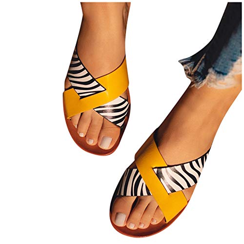 Humeng Ladies Lace Up Cross Snakeskin Color Matching Beach Flat Sandals Casual Comfortable Fashionable Shoes (Yellow, 39)