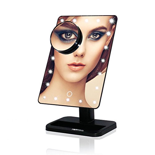 Humtool Specchio di Trucco LED Dello Schermo Tocco Dello Specchio Trucco Portatile 20 LEDs Illuminated Touch Screen Ingranditori 10X per Trucco Cosmetico Regolabile Vanity Tavolo Specchio(Nero)