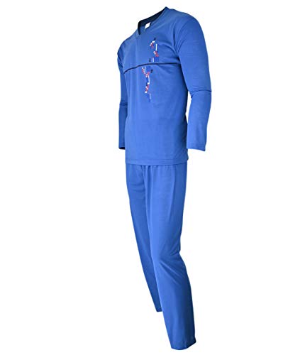 Humy Pigiama da uomo in due pezzi, pigiama lungo, a righe, in 100% cotone (da M a 3XL), [M1] beige., L