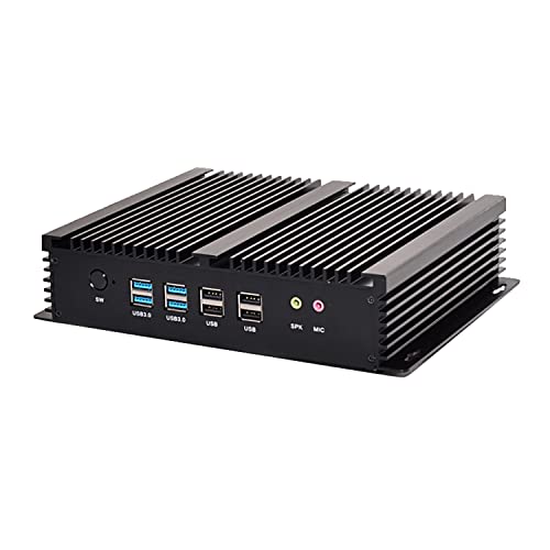 HUNSN Fanless Industrial PC, Mini Computer, Intel Core I3 4005U, Windows 11 or Linux Ubuntu, IM04, AC WiFi, BT4.0, 2 x HDMI, 2 x LAN, 6 x COM RS232, 4 x USB3.0, 4 x USB2.0, 4G RAM, 128G SSD