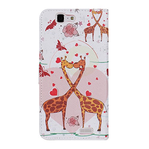 Hunye Custodia PU Pelle Portafoglio per Huawei Ascend G7 Case Giraffe Cuore Modello Flip Cover con Stilo Penna argento