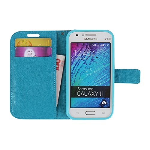 Hunye Custodia PU Pelle Portafoglio per Samsung Galaxy J1 Case Pulmino con Animali Flip Cover con Stilo Penna azzurro