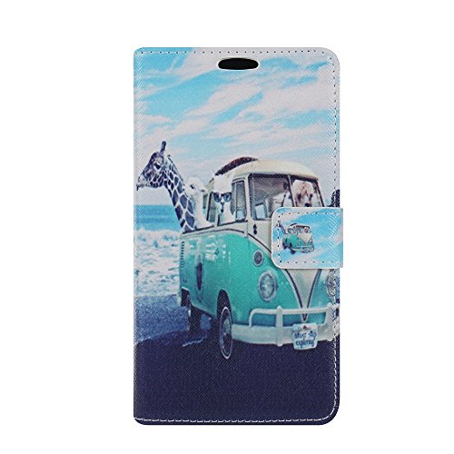 Hunye Custodia PU Pelle Portafoglio per Sony Xperia M2 Case Pulmino con Animali Flip Cover con Stilo Penna azzurro