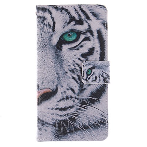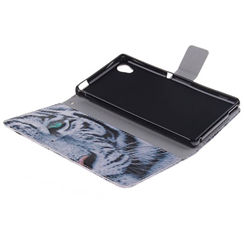 Hunye Custodia PU Pelle Portafoglio per Sony Xperia M4 Aqua Case Tigre bianco/nero Flip Cover
