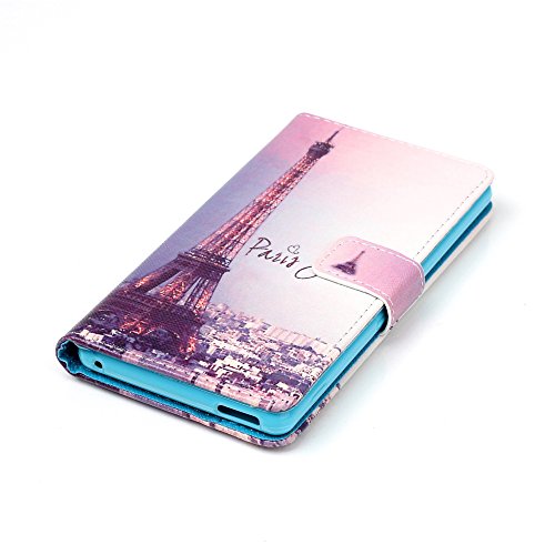 Hunye Custodia PU Pelle Portafoglio per Sony Xperia M4 Aqua Case Torre Eiffel Paris (#2) Flip Cover con Stilo Penna argento