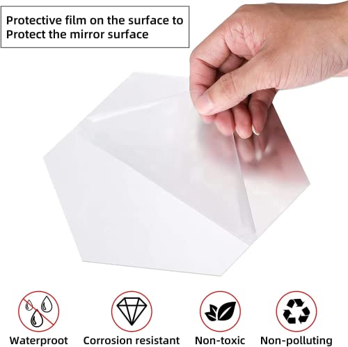 【Dimensioni】Adesivo da parete a specchio esagonale con dimensioni di 20 x 23 x 11,5 cm in colore argento, perfetto per decorare diverse occasioni.
