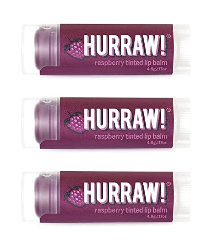 Hurraw! Confezione da 3 balsami per labbra color lampone: (pura tinta bacca) biologico, certificato vegano, privo di crudeltˆ e senza glutine. Ingredienti 100% naturali. Senza api, soia o palma.