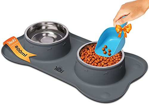 HUSKL 2 x 800 ml ciotola per cani con tappetino per ciotola per cani, tappetino antiscivolo in silicone di alta qualità, tappetino antiscivolo per cani, silicone e ciotola in acciaio inox,