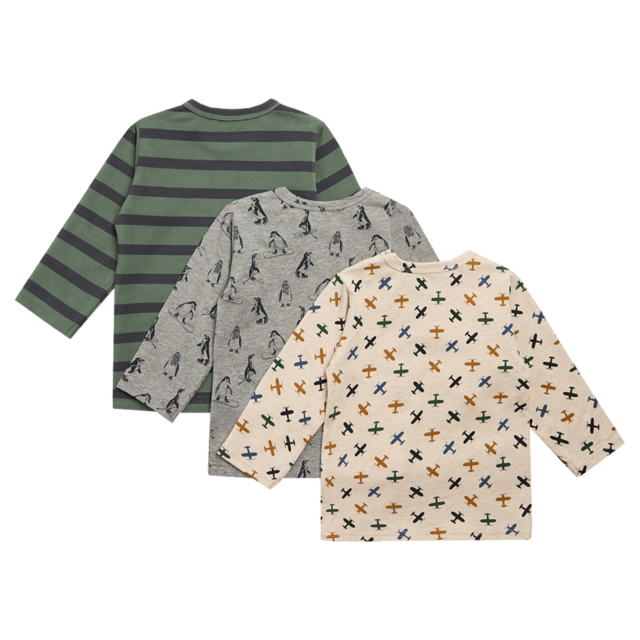 Dettagli del prodotto: Confezione da 3 camicie a maniche lunghe Collo rotondo Borchie a pressione su una spalla Colori diversi con Allover print Materiale e cura: Materiale: 95% cotone, 5% elastan Lavabile fino a 30°C Non asciugare in asciugatrice Non candeggiare Ferro moderatamente caldo