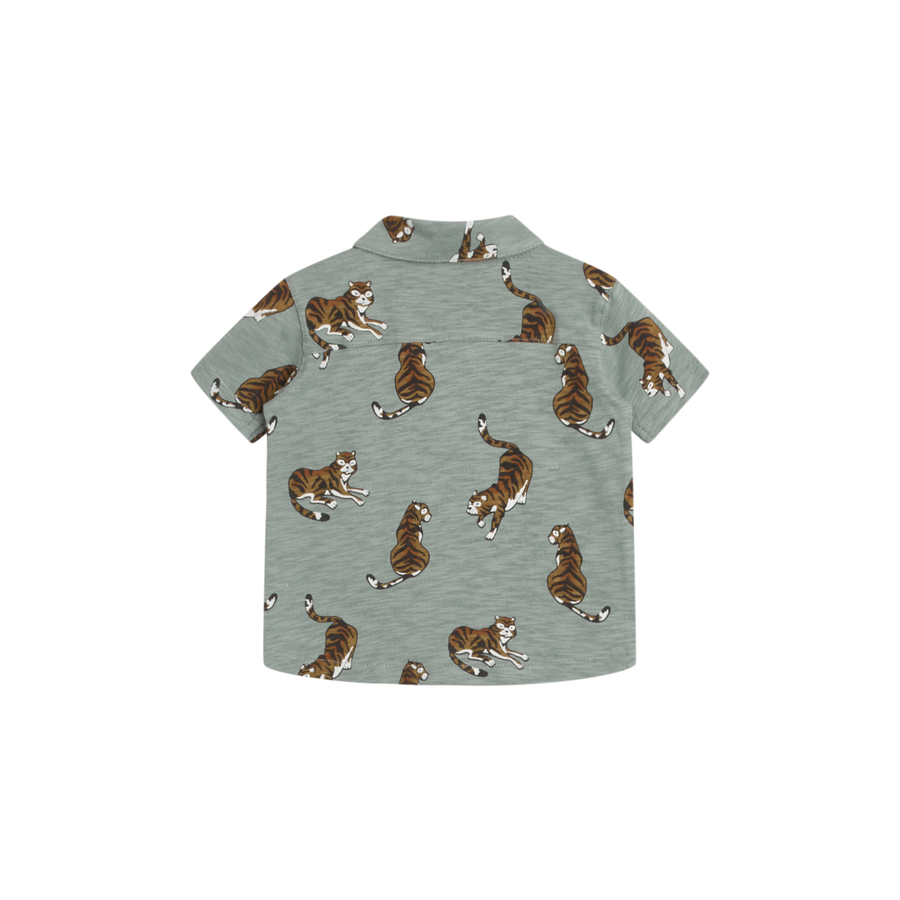 Dettagli del prodotto: Polo con colletto Kent Tasca sul petto Abbottonato sul davanti Tiger - Allover print Colore: Giada green Certificazione GOTS: 199845 Materiale e cura: Materiale: 100% cotone Lavabile fino a 30 °C Non immergere Si modella quando è bagnato Non asciugare alla luce diretta del sole