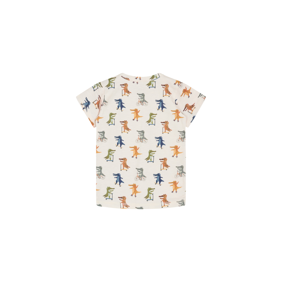 Dettagli del prodotto: Maglietta Tasca sul petto a sinistra Chiusura con bottone sulla spalla sinistra dinosauro- Print Colore: White sand Materiale e cura: Materiale: 95% cotone, 5% elastan Certificazione GOTS: 199845 Lavabile fino a 30 °C Non immergere Tira in forma quando è bagnato Non asciugare alla luce diretta del sole Ferro da stiro sul rovescio