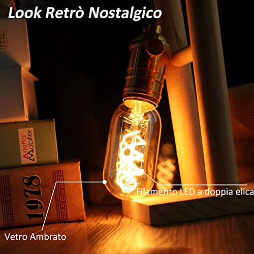 HUSTUNG Lampadine LED E27, Dimmerabile Lampadina LED 4W (Equivalente a 40W) T45 Edison Vintage Lampadina LED E27 Luce Calda 2700K - Ambra, Pacco da 4
