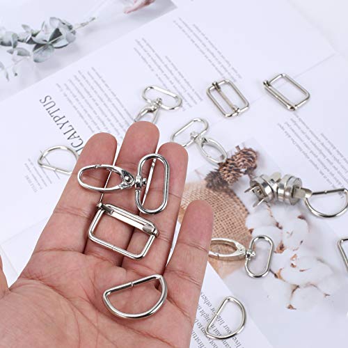 HUSZZM 46 Pezzi Fibbie Metallo Accessori Ganci Girevoli a Scatto Anello D Tri Glide Bottoni Magnetici e Hardware Coda Clip per Cucito Zaino Fai da Te Accessori per Borse Craft Argento Tracolla