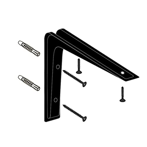 HUSZZM 4 Pezzi Staffa Mensola Nera Staffe per Mensole Pesanti Acciaio Staffa a L per Mensole Supporti Staffe Mensole da Muro per Tavolo da Lavoro Salvaspazio Fai da Te 10cm x 10cm