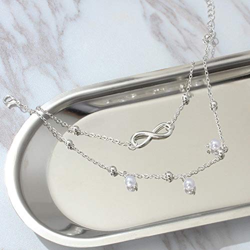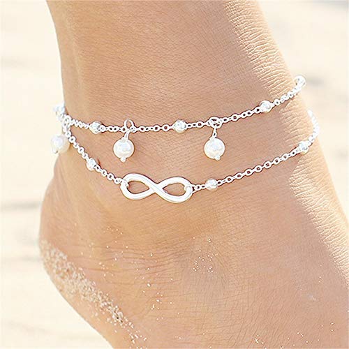 Huture Set di 6 bracciali Regolabili per cavigliera da Spiaggia e Spiaggia, a Forma di Stella, con Luna e Perla, Simbolo Infinito, per Donna e Ragazza