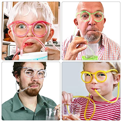 HUTVD Cannucce Occhiali Riutilizzabili in PVC, 8 Pezzi Occhiali di Paglia per Bambini Cannucce Flessibile novità per Feste Divertenti per Festa di Compleanno, Riunioni Annuali Feste