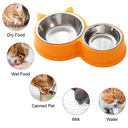 HUTVD Ciotole per Gatti Doppia, Ciotola Doppia per Gatti in Acciaio Inossidabile Ciotole Piccola e Grande Taglia Ciotole per Cani e Gatti Mangiatoi e Abbeveratoi per Gatti Cuccioli (Giallo)