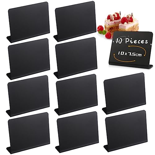 HUTVD 10 Pezzi Mini Lavagna Nera, 10x7.5cm Lavagna Piccola Lavagnetta Cancellabile Lavagna da Tavolo Segni Mini Lavagna in Piedi per Buffet, Matrimoni, Feste, Cartellini del Prezzi, Segnaposto