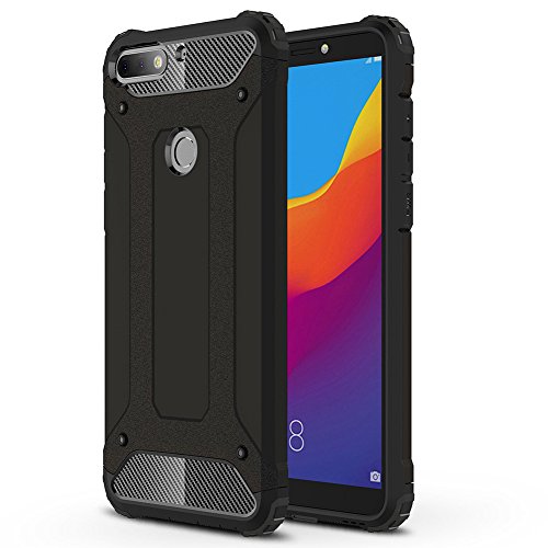 HUUH Cover Huawei Honor 7C Huawei Y7 Prime (2018) Huawei Y7 PRO (2018) Huawei Y7 2018, Antiscivolo,Antiurto,Anti-Impronta Digitale,Perfetta Combinazione di TPU + PC,duratura,(Nero)