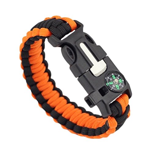 Huuiy - Braccialetto di sopravvivenza multifunzione in paracord con acciarino di silice, raschietto, fischietto e bussola, Orange