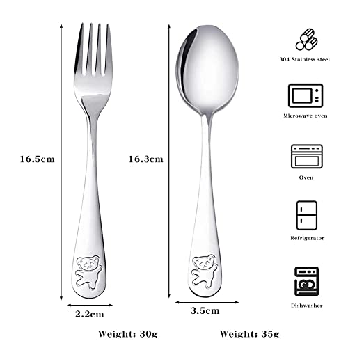 【DIMENSIONI】Set di forchetta e cucchiaio da 16,5 cm, ergonomico, si adatta alle mani dei bambini piccoli ed è perfetto per mangiare in modo indipendente.