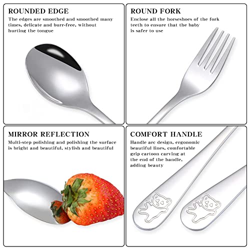 【MATERIALE】Posate per bambini in acciaio inossidabile 18/10, rettificate, lucidate e antiruggine, lavabili in lavastoviglie e igieniche.